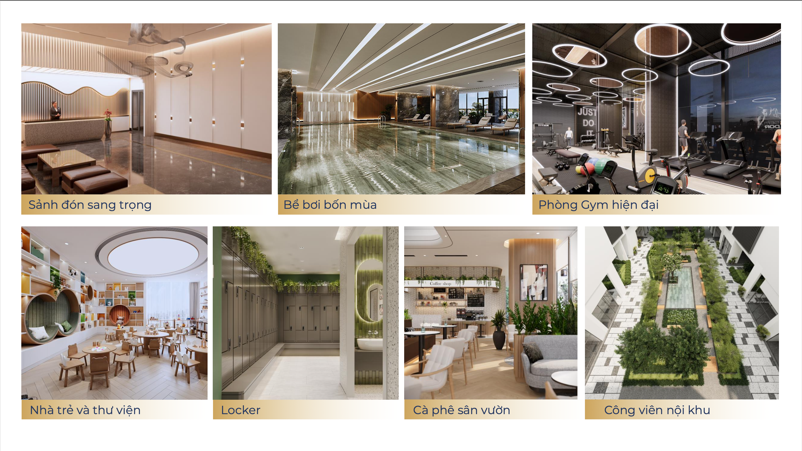 Các tiện ích nội khu: Nhà hàng, cà phê, hồ bơi 4 mùa, nhà trẻ, gym, spa, sân vườn, thư viện,….