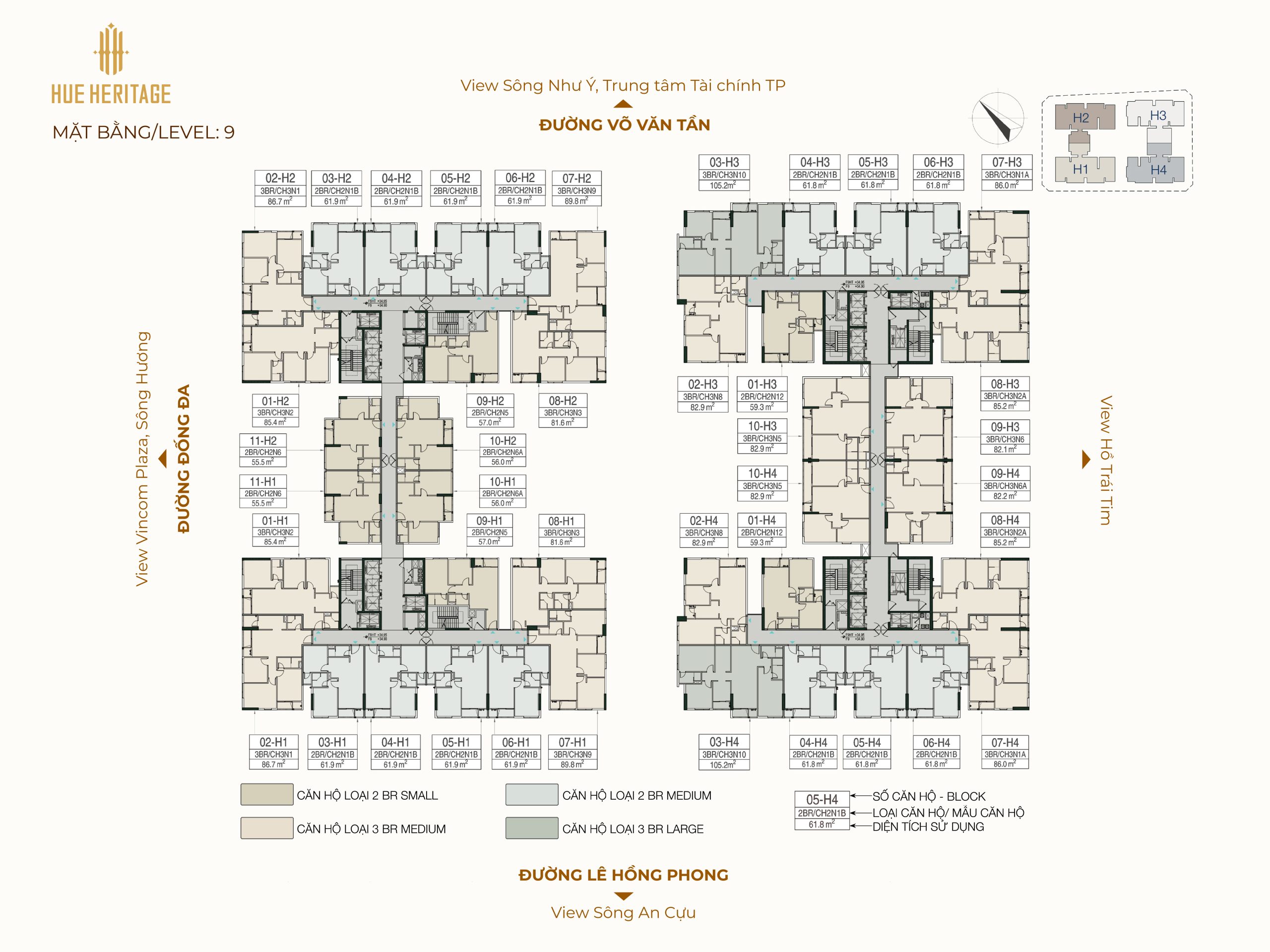 Gồm 2 khối tháp: H1,H2 (19 tầng) & H3,H4 (25 tầng)